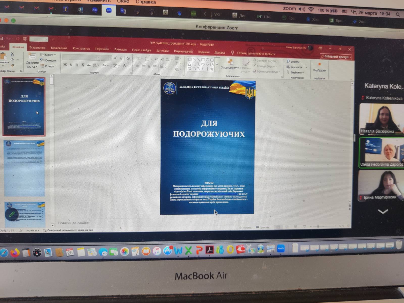 Другий блок питань на тему «Пропуск та оподаткування товарів, що переміщуються громадянами через митний кордон України» презентувала Запорожець Олена Федорівна, головний державний інспектор Одеської митниці, Радник митної служби І рангу, к.е.н. Сучасні зміни в податковому та митному законодавстві, нетарифне регулювання переміщення товарів, нові умови перетину митного кордону для фізичних осіб завжди викликають у кожного слухача залученість до цих питань. Крім того, ця тема співпадає з професійними інтересами, тому й продемонструвала захопленість матеріалом.